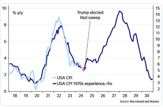 The USA CPI chart compares our current bout with inflation to the one that began in the 1970s. While the Fed believes they have accomplished their goal and started cutting interest rates aggressively, they have not yet deviated meaningfully from the painful path of prices in the 1970s. With all their experience, knowledge, tools, and beneficial adjustments to CPI measures, the Fed has not reached its 2% target after 5 years.