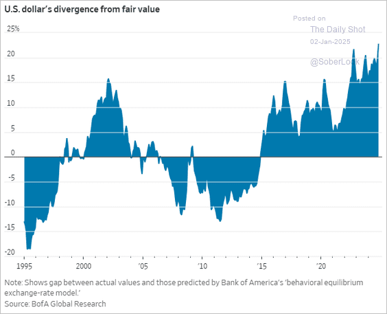 While the U.S. dollar may not go far at McDonald's, it has appreciated internationally. However, this trend may not last. President-elect Trump previously tried to weaken the dollar in 2017, arguing that a strong dollar isn't always beneficial. If the dollar's value reverses in 2025, it could present new investment opportunities.