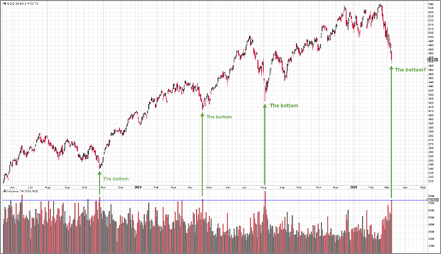 Stocks are falling, especially the so-called Magnificent 7. Monday experienced one of the highest volumes of trading ever. These have often marked good buying opportunities. However, nothing is guaranteed. The news has been tough on stocks, and I don't know when it will turn. Perhaps we are looking for a day when the markets move up, not because of good news but despite the bad news. That is a good sign (if it happens).